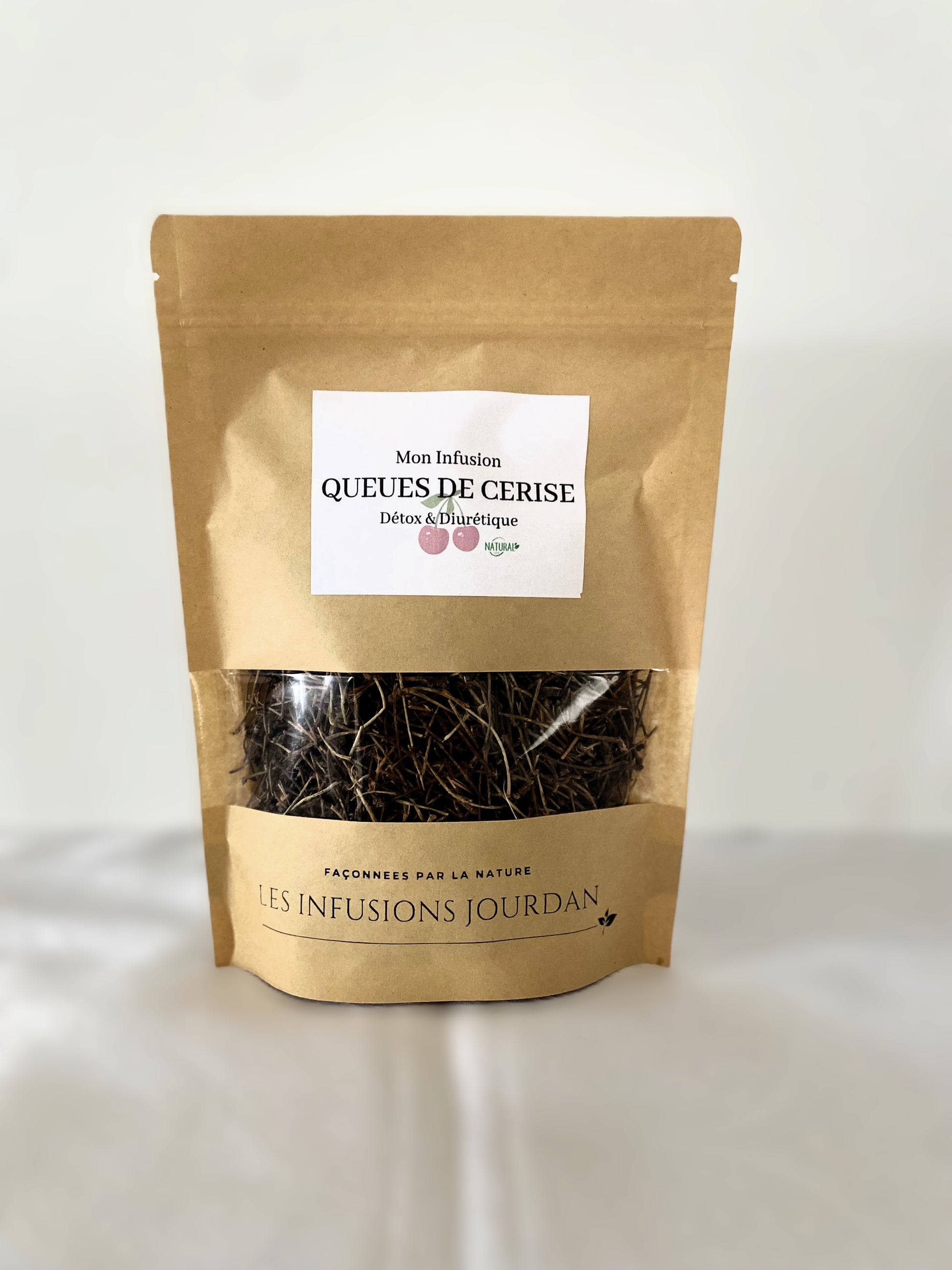 Laisser macérer toute une nuit, 15g de queues de cerise dans 1L d’eau froide. Ensuite, faire chauffer le tout (les queues toujours dans l’eau) jusqu’à ébullition. Laisser bouillir 8 minutes environ puis arrêter le feu. Laisser encore infuser 20 min.